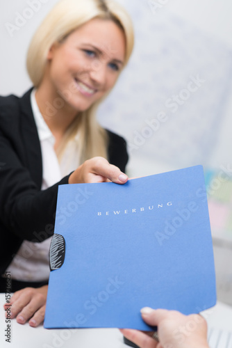attraktive geschäftsfrau nimmt bewerbung entgegen