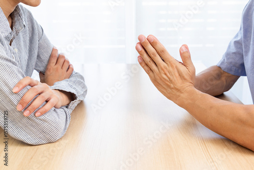 女性に謝る男性の手元