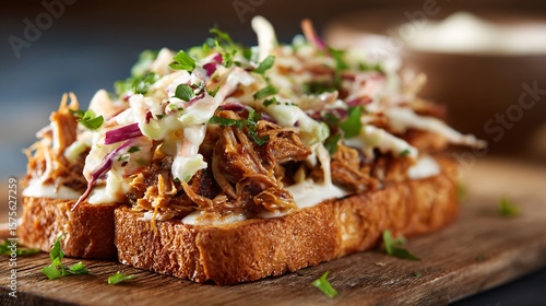 Open sandwich with pulled pork and slaw