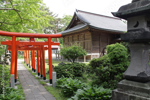 shinto temple (yojiro inari shrine) at the senshu park in akita in japan