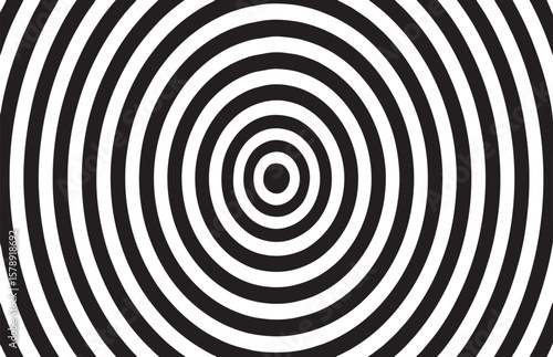 Concentric black and white circles with a hypnotic spiral pattern in a minimalist design