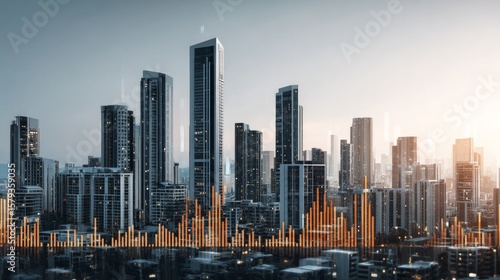 Contemporary real estate visuals with charts and high-rise buildings