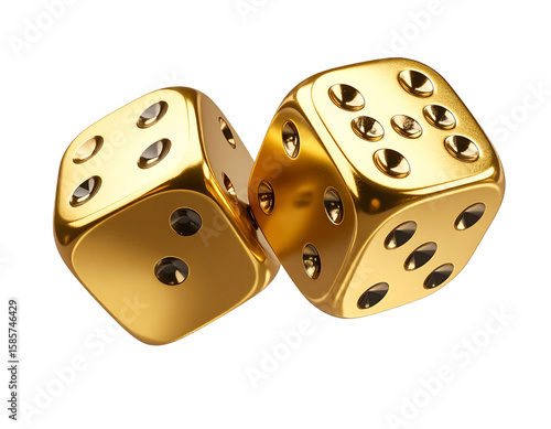 Luxurious Floating Gold Dice in Mid-Air – Transparent Background Premium Casino Element