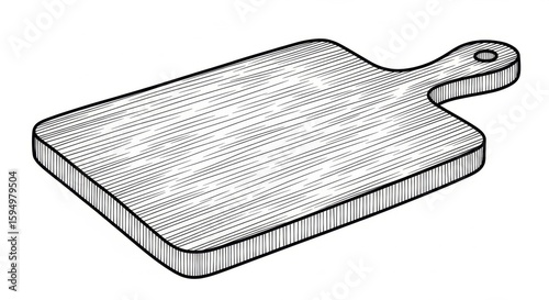 Wooden Cutting Board with Handle in Sketch Style for Kitchen and Cooking