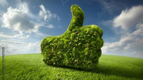 Green thumb up symbol growing in a field symbolizing eco friendliness