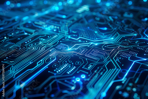 先進的な工場オートメーションを象徴する青い電子回路構成