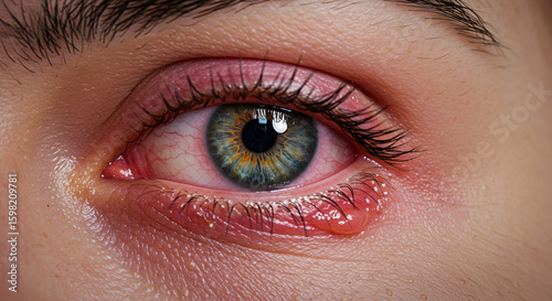 Bacterial conjunctivitis with swollen eyelids and ocular discharge