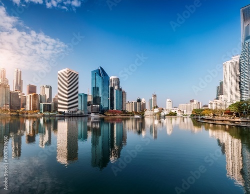 cityscape reflection in calm water blue sky city skyline cityscape river reflection