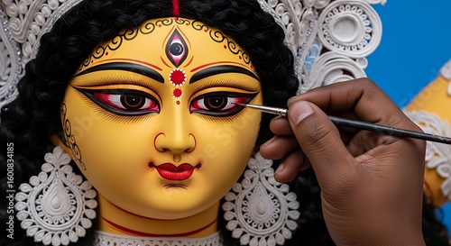 Artisan meticulously paints the eye of a durga idol in preparation for the festival