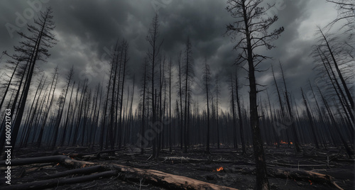 #1949028045Devastated Forest After Wildfire in Mountains