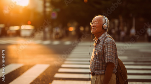 日本人高齢男性が音楽に耳を傾ける