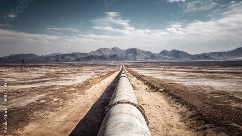 Pipeline stretches across a barren landscape