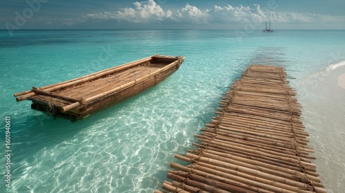 Bamboo Boat and Raft in a Tropical Ocean