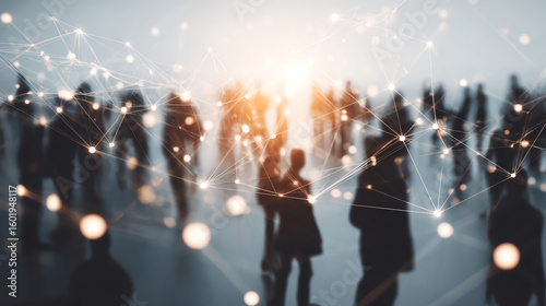 Silhouetted figures engaging in a modern networked environment, symbolizing collaboration and innovation in business.