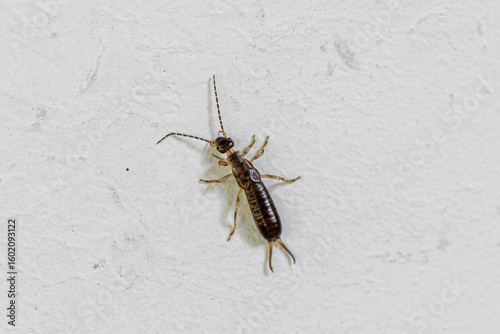 Skorek pospolity (Forficula auricularia) na białym tle
