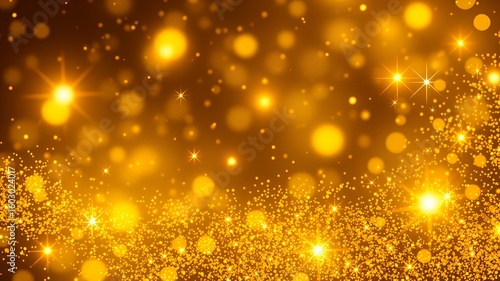 Abstract golden bokeh lights and glitter background with sparkling particles
