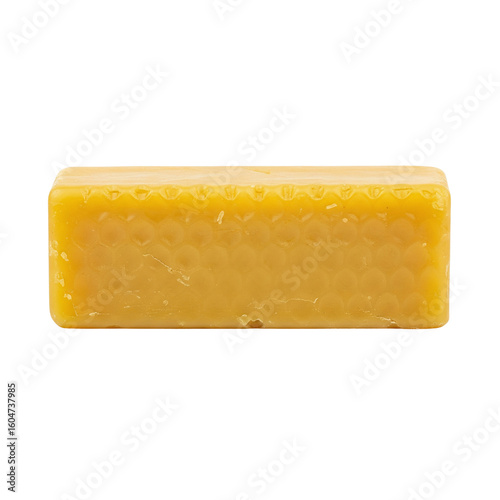 Solid block of natural yellow beeswax with honeycomb pattern