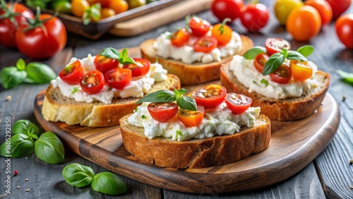 Bruschetta with Ricotta and Tomatoes – Toasted bread with creamy cheese — fresh Mediterranean flavors.