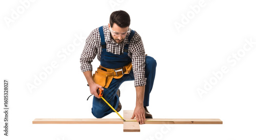 Woman measuring a wooden plank with a yellow retractable tape measure.
