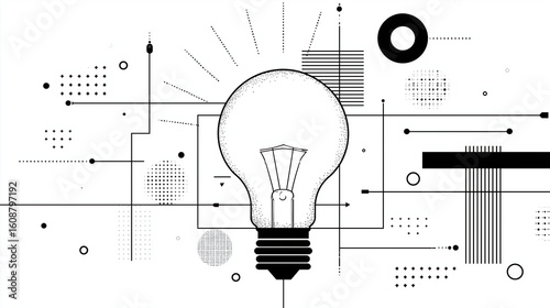 Żarówka narysowana jedną linią, wektorowa ilustracja symbolizująca kreatywność, prostotę i innowacyjne myślenie, tło do materiałów o projektowaniu, sztuce i rozwoju osobistym