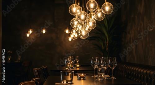 Elegant Restaurant Interior with Glowing Edison Bulb Lights