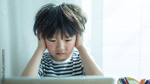 児童が耳を塞ぎ学びに苦しむ