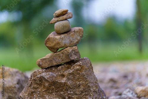 stos kamieni w parku na rozmytym tle
