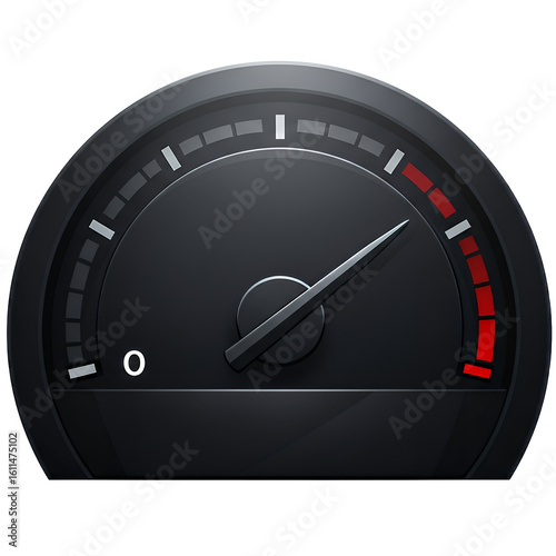 Black speedometer gauge icon with red highlight on transparent background
