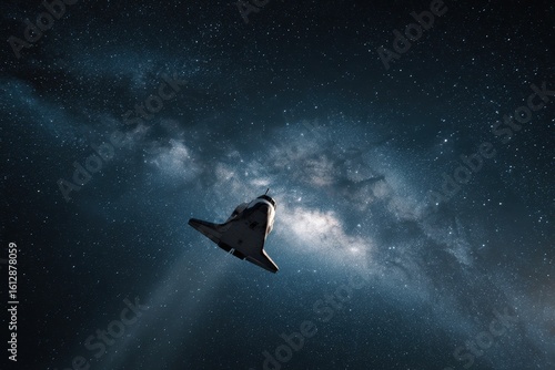 Exploration of the cosmos as a spacecraft ascends toward the vibrant galaxy in a clear night sky filled with stars