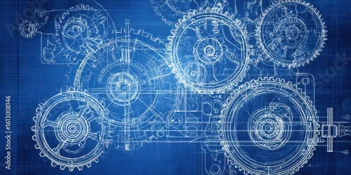 Intricate gears and mechanisms displayed on a blue background showcasing advanced engineering and design concepts