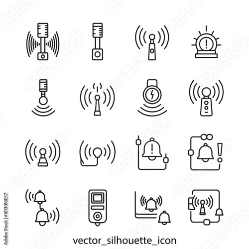 Vector notification icons set, including bell, alert, and signal symbols, for website, app, or UI notification system, isolated on transparent background, eps