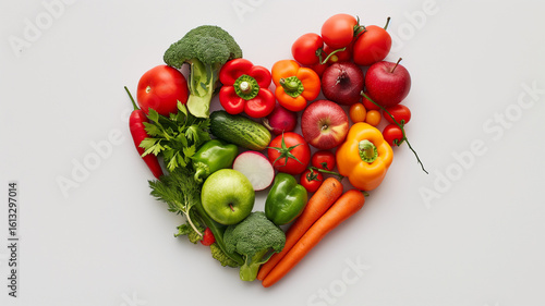 Kolorowe warzywa ułożone w kształcie serca na białym tle – symbol zdrowej diety i stylu życia