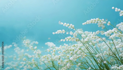 Baby's breath_淡い水色の背景に可憐に揺れる白いかすみ草(花言葉は無垢,無邪気,幸福,感謝,親切のイメージ)