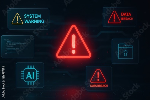 Digital Alert Symbols and Signs Indicating Security Threats Online