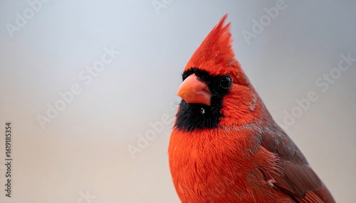 Majestic Red Northern Cardinal Portrait UpClose View Against Soft Blurred Background.