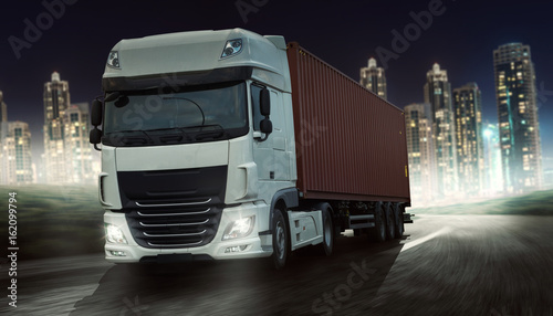 LKW bei Nacht vor Skyline