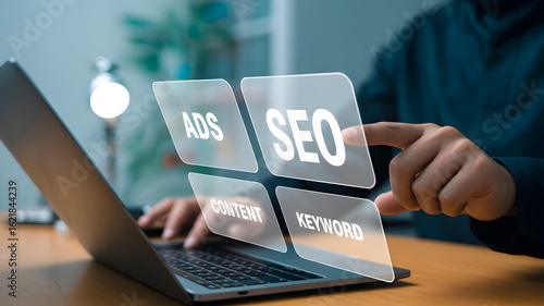 Boost your online presence with dynamic SEO strategies, creating engaging content and using effective keywords for ads and marketing success on your laptop