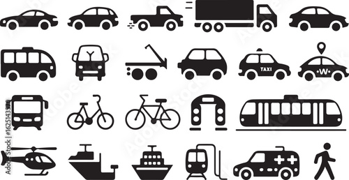 Transportation and Vehicles Outline Icons Set on a Clean Background Vector