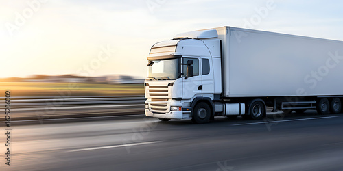 Truck on the move, transporting cargo across the highway during a sunny day. Logistics and freight transport in action.
