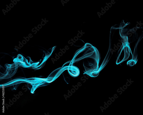 #569948356A swirling pattern of blue smoke against a black background, creating a dynamic and abstract visual effect.