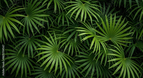 A dense arrangement of saw palmetto leaves creating a lush green tropical background texture image