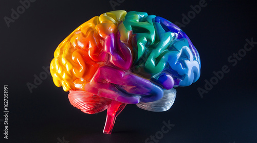 Modelo de cérebro com regiões destacadas por cores