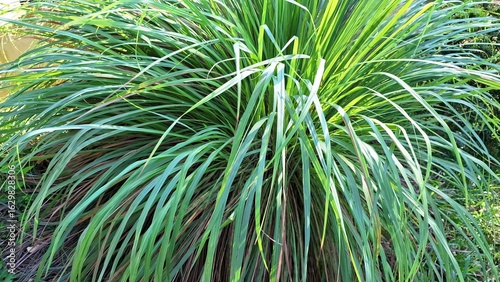 Vibrant Lemongrass Bush (Cymbopogon Citratus) in Natural Setting: Aromatic Leaves Used for Cooking and Essential Oils