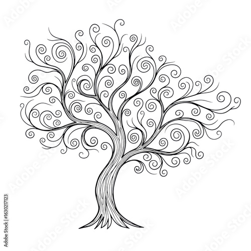 Elegant swirling tree design with intricate branch patterns on transparent background