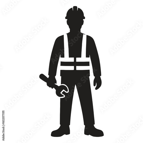 Construction Worker Silhouette Icon – Mechanic with Wrench for Labor, Industry, and Safety Themes