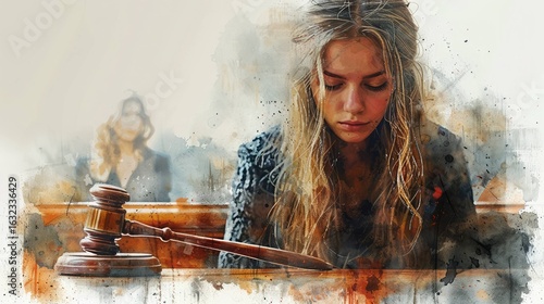 A wooden gavel rests on a table in a courtroom.