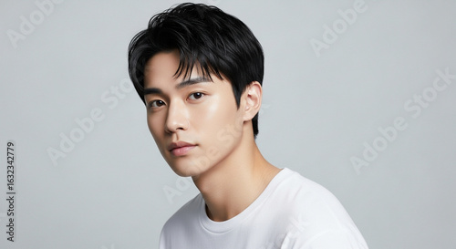 清潔感のある日本人男性のスキンケア・ヘアスタイルポートレート|A portrait of a clean and fresh-looking Japanese man focusing on skincare and hairstyle