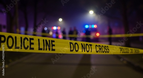 A powerful image of law enforcement activity, highlighted by bright yellow police tape
