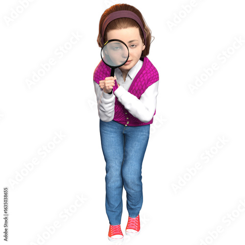 3D rendered girl sleuth character isolated on transparent background
