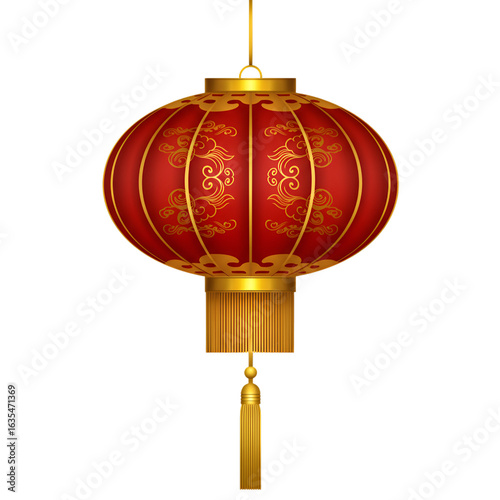 Illustration Of A Red And Gold Decorative Chinese Lantern On Transparent Background